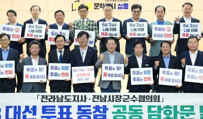 이어 김영록 지사와 전남시장군수협의회는 ‘제21대 대통령 선거 투표 동참 공동 담화문’을 발표하고 도민의 자발적인 투표 참여를 호소했다.