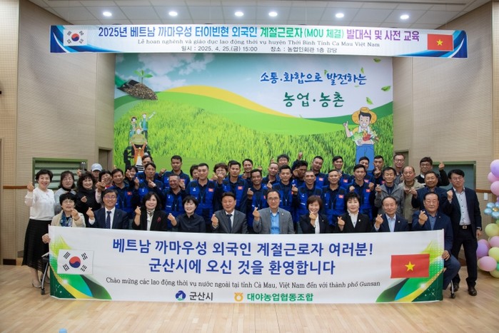 [코리아 이슈저널=김종오 기자] 군산시는 25일 농업인회관 1층 강당에서 대야농협 주관으로 ‘공공형 외국인 계절근로자 발대식 및 사전교육’을 실시했다.