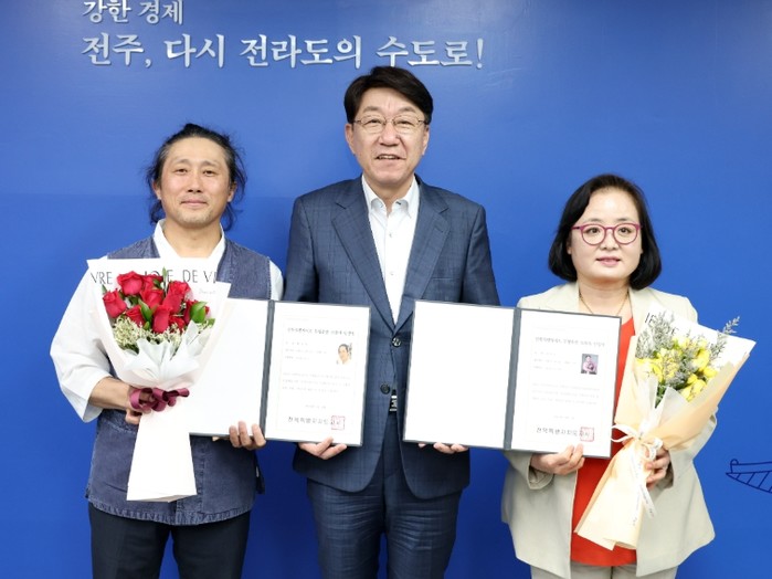 우범기 전주시장은 26일 오후 3시, 전주시장실에서 올해 새롭게 전북특별자치도 무형유산으로 인정된 △전북향토민요 심미숙 △악기장 최병용 등 2명에게 인정서를 교부했다.
