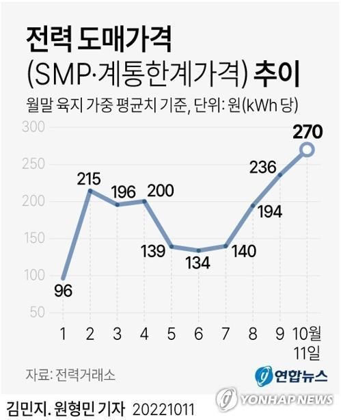 ▲ [그래픽] 전력 도매가격(SMP·계통한계가격) 추이