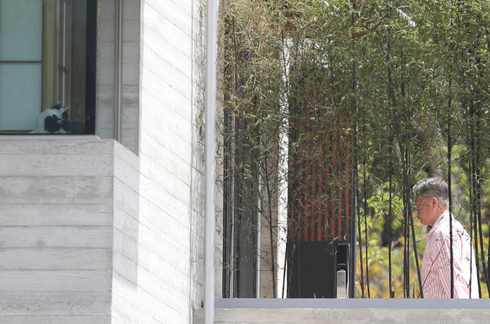 ▲ 문재인 전 대통령이 귀향 이튿날인 11일 오전 경남 양산시 하북면 평산마을 사저에서 이동하고 있다. 사진 왼쪽 사저 유리창에 고양이 한 마리가 앉아 있다. 2022.5.11