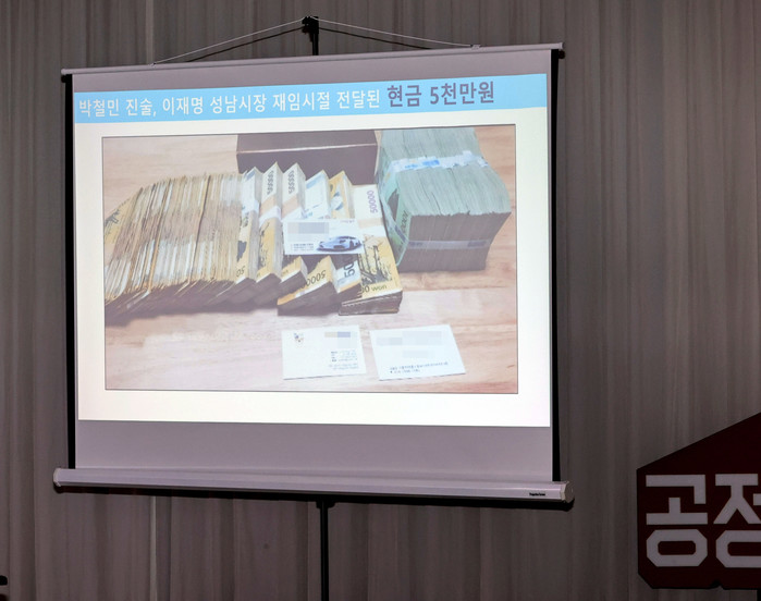 김 의원은 전날 국회 행안위의 경기도청 국감에서 국제마피아파 행동대원이던 박철민씨가 제보했다는 현금다발 사진을 제시하며 이 후보가 성남시장 시절 20억원을 지원받았다고 주장했다.