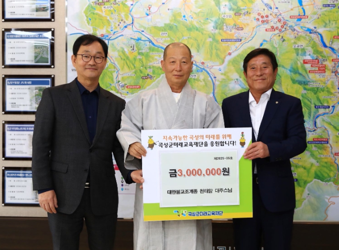 [코리아 이슈저널=김종오 기자] 전남 곡성군은 대한불교조계종 천태암 주지 대주스님이 재단법인 곡성군미래교육재단에 곡성형 인재양성을 위해 장학금 3백만 원을 기탁했다고 지난 2일 밝혔다.