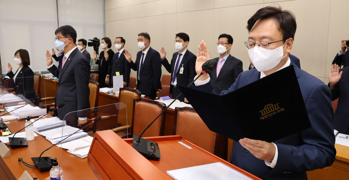 ▲ 조규홍 보건복지부 장관이 5일 국회 보건복지위원회에서 열린 보건복지부·질병관리청에 대한 국정감사에서 선서하고 있다. 2022.10.5 [국회사진기자단]