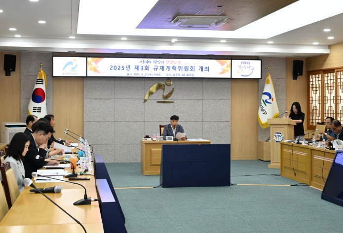 [코리아 이슈저널=김태훈 기자]  울산 남구는 27일 남구청 3층 회의실에서 주민과 기업의 불편을 초래하는 자치법규 규제를 개선해 행정의 책임성을 높이고 주민의 권익보호를 강화하기 위한 ‘2025년 제3회 규제개혁위원회’를 개최했다.