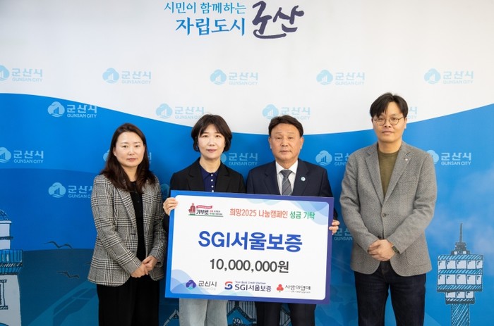 [코리아 이슈저널=김종오 기자] SGI서울보증 광주호남본부(본부장 조지영)가 15일 지역사회 나눔 실천의 하나로 군산시에 성금 1,000만 원을 전달했다.