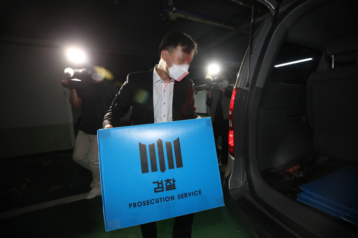 | ▲ 9월 29일 오후 경기도 성남시 화천대유자산관리 사무실에서 압수수색을 마친 검찰 관계자들이 압수품을 옮기고 있다. [연합뉴스 자료사진] |