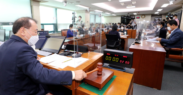 이후 TBS의 자료 제출이 부실하다는 국민의힘 의원들의 지적이 이어졌고, 결국 오후 3시 30분께 감사가 일시 중단됐다.