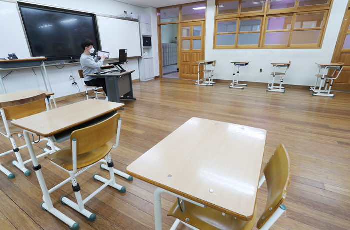교육부에 따르면 이날 오전 10시 기준 전국 2천378개 고교 중 2천221곳(93.4%)이 전면 원격수업을 했으며 157곳(6.6%)이 등교 수업을 했다.