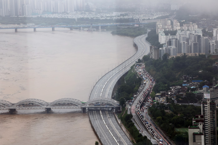 한강 수위가 급격히 높아지면서 반포대로 잠수교는 전날 밤부터 양방향 통제되고 있고, 올림픽대로 여의하류∼여의상류 양방향이 통제 중이다.