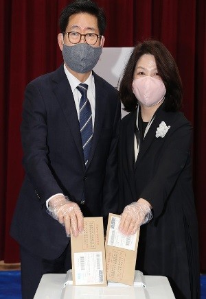 양 지사는 부인 남윤자 씨와 함께 투표소를 찾아 입구에서 발열 체크를 한 뒤, 손 소독 후 마스크와 위생장갑을 착용하고 본인 확인을 거쳐 소중한 권리를 행사했다.