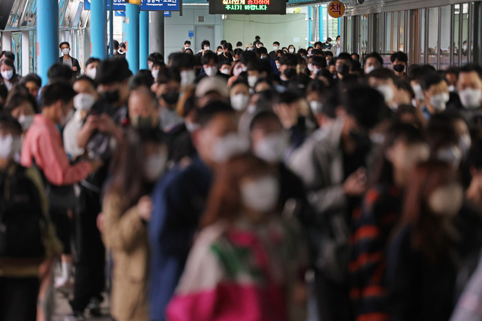 | ▲ 신도림역 [연합뉴스 자료사진] 올해 4월 28일 오전 서울 신도림역에서 마스크를 쓴 시민들이 이동하고 있다. 2022.4.29 |