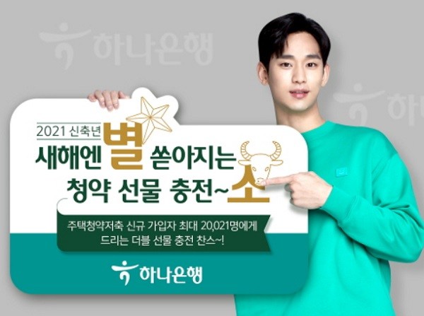 [열린의정뉴스 = 김윤영 기자] 하나은행(은행장 지성규)은 주택청약종합저축 신규가입 손님을 대상으로 '새해엔 별 쏟아지는 청약 선물 충전∼소' 이벤트를 진행한다고 밝혔다.