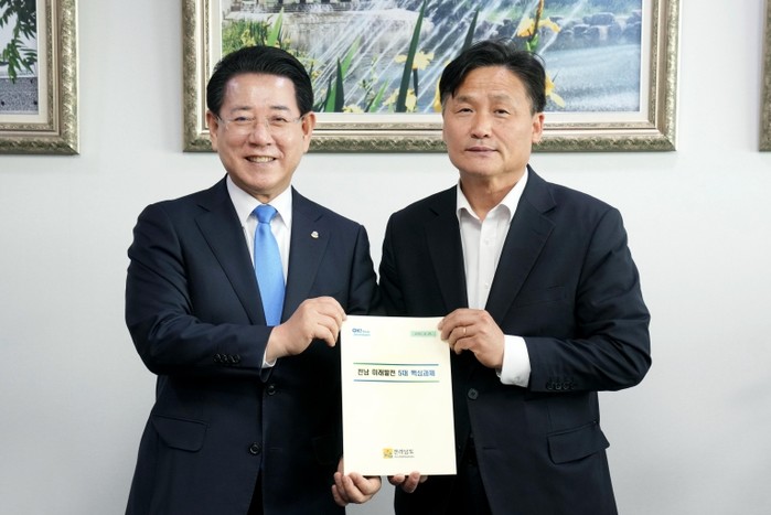 주요 건의 과제는 ▲석유화학·철강산업 대전환 메가 프로젝트 추진 ▲솔라시도 AI 에너지 신도시 조성 ▲AI 첨단 농․축산업 융복합 지구 조성 ▲우주발사체산업 융복합 클러스터 조성 ▲무안국제공항, 동북아 대표 관문공항 육성 등이다.