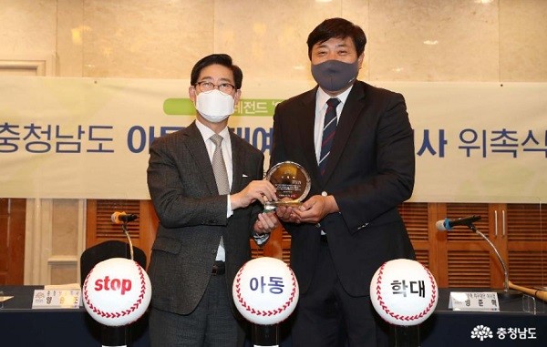 도는 지난 4일 서울 켄싱턴호텔여의도에서 양승조 지사와 양준혁 전 선수, 양준혁야구재단 관계자 등 10여 명이 참석한 가운데, 아동학대 예방 홍보대사 위촉식을 개최했다.