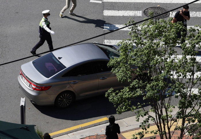 | ▲ 경찰이 12일부터 '교차로 우회전 일시 정지' 위반 차량을 단속한다. 교차로에서 우회전하는 차량이 건널목을 건너거나 건너려는 보행자가 있는데도 일시정지하지 않고 진행하다 적발되면 범칙금 6만원(승용차 기준)과 벌점 10점이 부과된다. 이날 오후 서울 종로구 이화사거리에서 교통경찰이 우회전 차량을 단속하고 있다. 2022.10.12 |