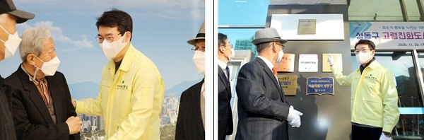 ▲ 지난 해 11월 성동구는 WHO 고령친화도시 인증 동판 제막식을 개최했다[출처=성동구청]
