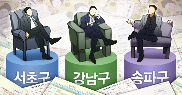 자치구별로 보면 강남구 256억원(22.4%), 송파구 112억원(9.8%), 중구 99억원(8.6%), 서초구 86억원(7.5%) 순으로 많았다.