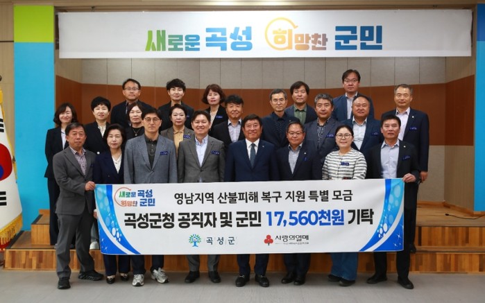 한편, 모금된 성금은 전남사회복지공동모금회를 통해 중앙회 사회복지공동모금회로 전달되며, 곡성군의 자매결연 지자체인 경북 영양군을 비롯하여 산청군, 안동시, 영덕군, 청송군 등 최근 산불 피해를 입은 영남 지역 지자체에 전달될 예정이다.