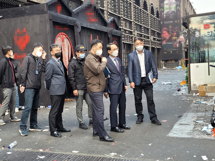 ▲ 남구준 국가수사본부장이 31일 서울 이태원 사고현장 합동감식 현장을 점검하고 있다. 2022.10.31 [경찰청 제공. 재판매 및 DB 금지]