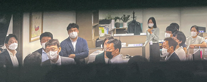 | ▲ 윤석열 전 검찰총장의 이른바 '고발 사주' 의혹과 관련한 핵심 당사자인 국민의힘 김웅 의원이 10일 서울 여의도 국회 의원회관 자신의 사무실에서 압수수색 나온 고위공직자범죄수사처 수사관들에게 항의하고 있다. 2021.9.10 [국회사진기자단] |