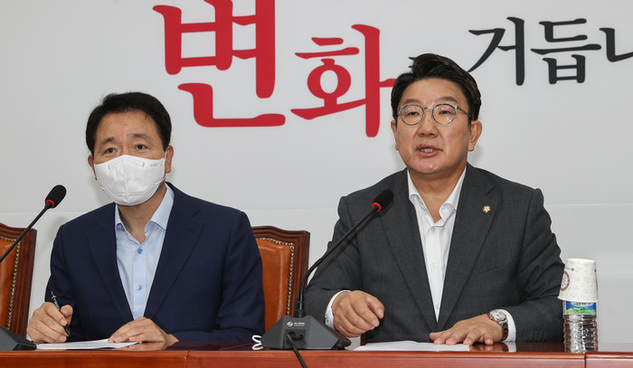 | ▲ 국민의힘 권성동 원내대표가 29일 서울 여의도 국회에서 열린 비상대책위원회의에서 발언하고 있다. 2022.8.29 [국회사진기자단] |