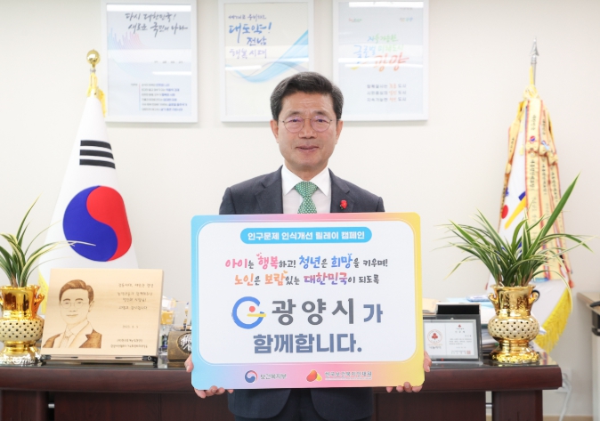 정인화 광양시장, ‘인구문제 인식개선 릴레이 캠페인’ 동참