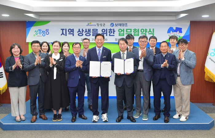[코리아 이슈저널=김종오 기자] 장성군과 보해양조㈜가 25일 군청 상황실에서 업무협약을 체결했다. 김한종 장성군수와 조영석 보해양조㈜ 대표 등 관계자 10여 명이 참석했다.