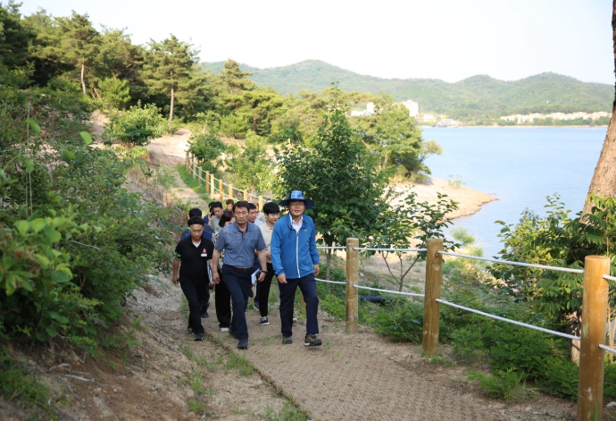 ▲ 윤병태 나주시장이 나주호 둘레길 조성 현장 점검을 실시하고 있다.