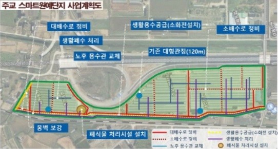 2022년까지 용수관로 및 배수로 정비, 상수도(소화전), 폐식물 처리시설 및 무감전 화재 예방 등의 시설을 주교화훼단지에 구축하게 된다.