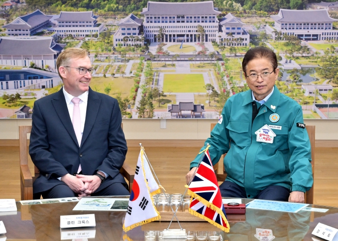[코리아 이슈저널=김태훈 기자] 이철우 경상북도지사는 3일 도청을 방문한 콜린 크룩스(Colin Crooks) 주한 영국대사 내외와 만나, 경주 APEC 정상회의의 성공적 개최 협력 방안과 함께 산업·문화·교육 등 다양한 분야의 교류 확대를 논의했다.