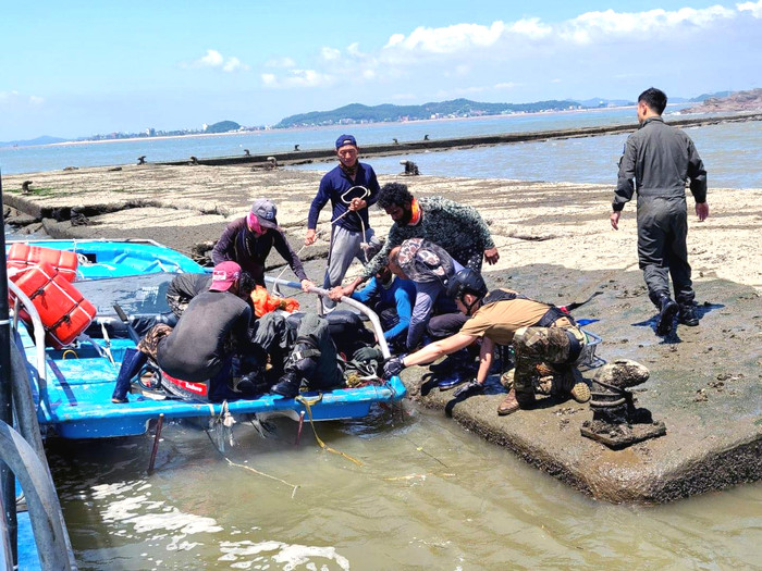 스리랑카 근로자들은 김 양식에 쓰는 도구로 서둘러 밧줄을 끊고 풀어서 조종사들을 구출, 가까운 방죽으로 옮겼다.