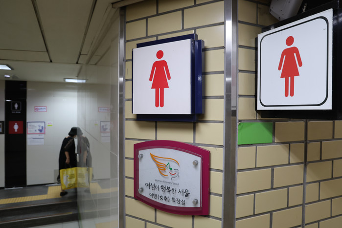 ▲ 15일 서울 중부경찰서에 따르면 전날 오후 9시께 서울지하철 2호선 신당역 여자화장실에서 20대 여성 역무원을 살해한 혐의로 30대 남성 A씨를 현행범 체포했다. 사진은 15일 오전 신당역 여자화장실 입구의 모습. 2022.9.15