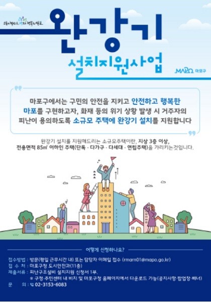 신청을 희망하는 건물 소유자는 구청 홈페이지에서 지원신청서를 내려받아 작성한 뒤 구 도시안전과에 직접 방문하거나 전자우편(rmarn01@mapo.go.kr)을 통해 신청하면 된다.