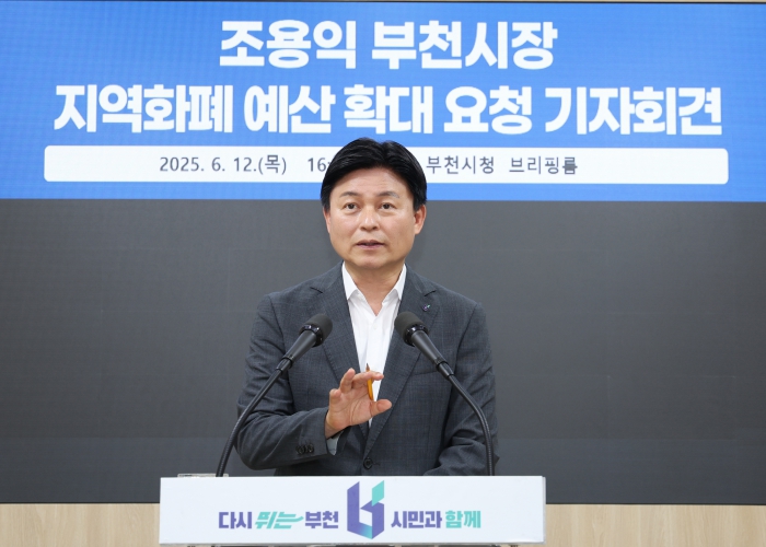 [코리아 이슈저널=홍춘표 기자] 조용익 부천시장이 12일 부천시청 브리핑룸에서 기자회견을 열고, 이재명 정부의 소비 진작을 위한 추가경정예산(추경) 편성을 환영하면서 지역화폐 관련 국비 예산 대폭 확대를 요청했다.