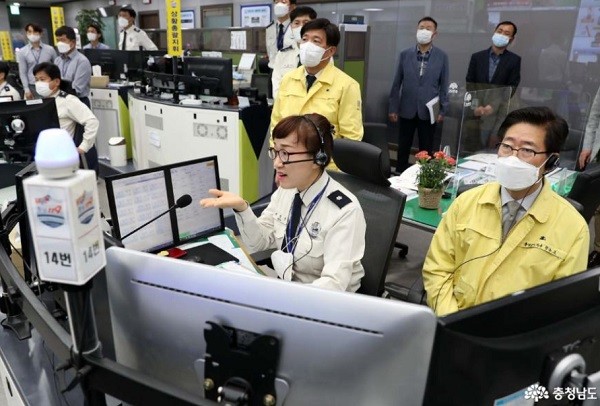 도 소방본부는 7일 119종합상황실에서 양승조 지사가 참석한 가운데 시연회를 열고 본격적인 서비스의 시작을 알렸다.