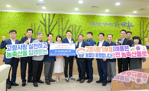 순천농협과 여수농협은 각 300명의 임직원이 참여해 각 3천만 원(1인당 10만 원 기준)씩 고향사랑 기부금을 상호 기탁하기로 했다.