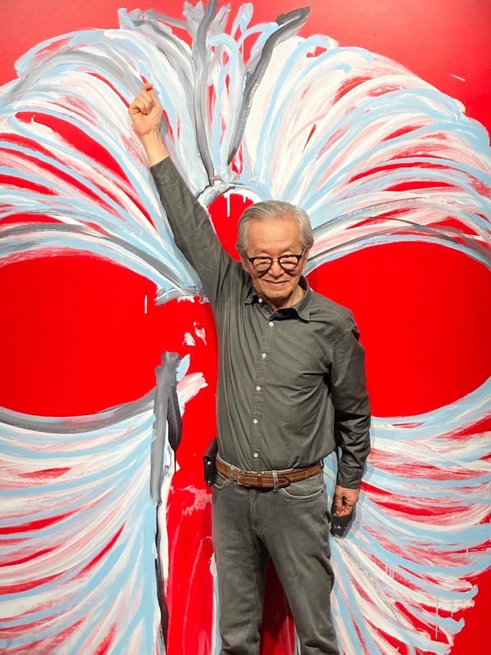 화가라면 화면을 뚫어지게 바라보며 온 정신을 집중해 붓질하는 것이 당연하게 여겨지지만, 이건용(79) 화백의 시선은 캔버스를 향하지 않는다. 그의 '신체 드로잉'은 손끝, 붓끝의 세밀한 터치가 아니라 몸의 움직임으로 완성된다.