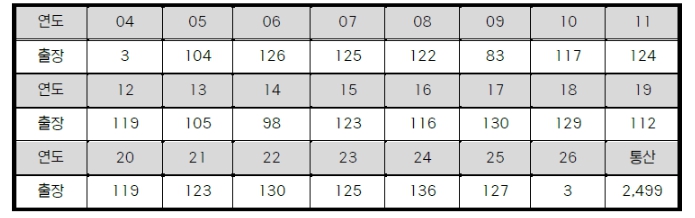 ▲ 삼성 강민호 연도별 출장 경기 수