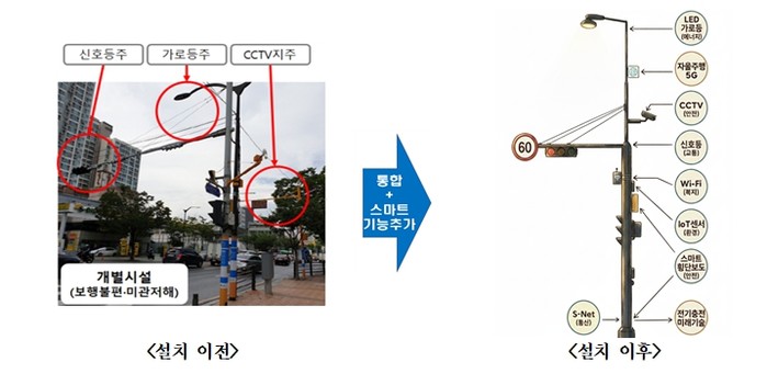 또 기존에 CCTV․신호등․가로등 등을 각각 설치하던 방식과 달리 여러 시설물을 하나의 지주로 통합하면서 전력․통신 인입공사 통합, 기초․배선 공정 축소, 중복 설치된 시설물 제거 등으로 평균 23%의 시설물 설치비도 절감된 것으로 나타났다.