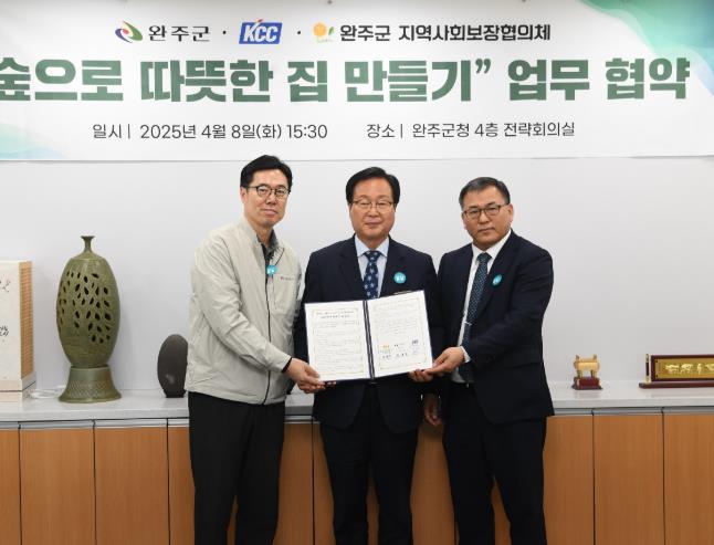 [코리아 이슈저널=김종오 기자] 완주군이 ㈜KCC 전주공장, 완주군지역사회보장협의체와 함께 저소득층 주거환경 개선을 위한 업무협약을 체결했다.