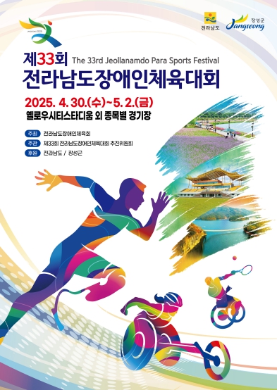 [코리아 이슈저널=김종오 기자] 장성군이 오는 30일부터 5월 2일까지 ‘제33회 전라남도장애인체육대회’를 연다. 앞선 18~21일 제64회 전남체전에 이은 장성 최초 개최다.