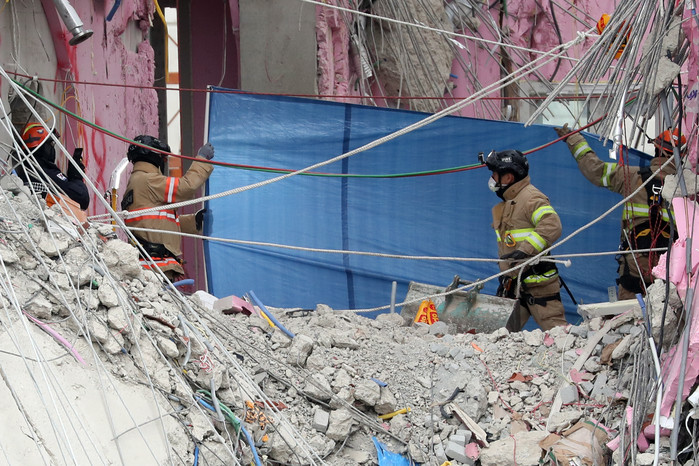 | ▲ 광주 붕괴사고 현장서 매몰자 수습하는 소방대원 [연합뉴스 자료사진] |