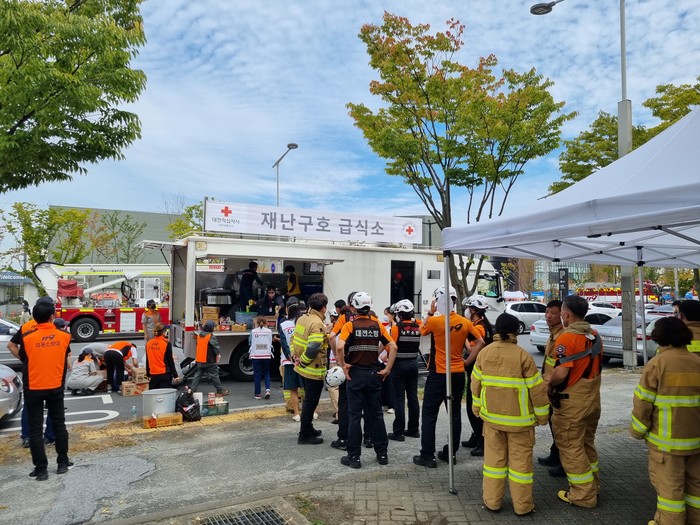 현대아울렛에서 불이 났다는 뉴스를 접하고 소방본부 다음으로 현장에 제일 먼저 달려간 이들은 대한적십자사 대전세종지부의 재난 대응 봉사회 단원들이었다.