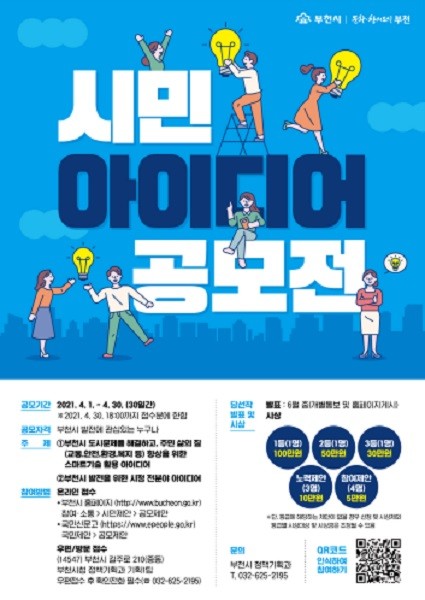 [열린의정뉴스 = 김진성 기자] 부천시는 창의적인 아이디어를 발굴하고 시민 참여 행정을 실현하고자 ‘2021년 상반기 시민 아이디어 공모전’을 개최한다.