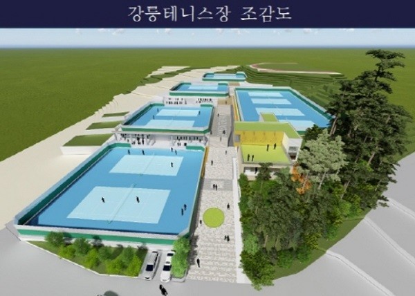 강릉테니스장은 생활체육 활성화 및 각종 대회 유치를 위해 교동 465 일원에 55억 원(국비 16억 원)을 들여 실외 테니스장 12면, 관리동(지상 3층·연면적 566㎡) 등 대규모 공공 체육시설을 조성하는 사업으로 올해 8월 준공을 목표로 한창 공사가 진행 중이다.