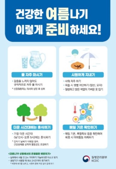 또 날씨가 더운 시간대에는 자신의 건강 상태를 살피며 휴식을 취하는 등 활동 강도를 조절해야 한다.
