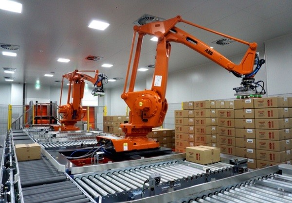 창고에 도착하면 적재 로봇이 제품을 받아 입고한다. 제품을 분류하고 저장하는 것까지 사람의 손을 전혀 필요로 하지 않는다.