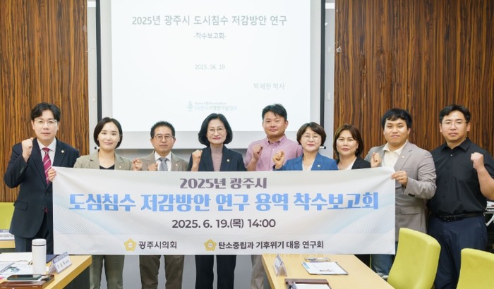 [코리아 이슈저널=홍춘표 기자] 광주시의회 의원연구단체인 '탄소중립과 기후위기 대응 연구회'가 지난 19일 2025년 광주시 도심침수 저감방안 연구 용역 착수보고회를 개최했다.