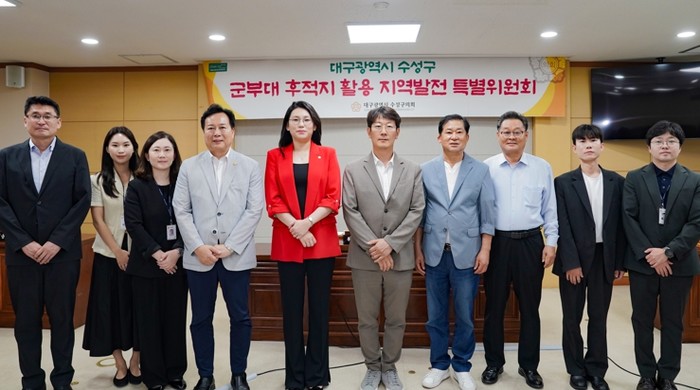 [코리아 이슈저널=김태훈 기자] 대구광역시 수성구의회 ‘군부대 후적지 활용 지역발전 특별위원회’는 지난달 31일 군부대 후적지 개발의 조속한 추진을 촉구하기 위한 간담회를 개최했다.